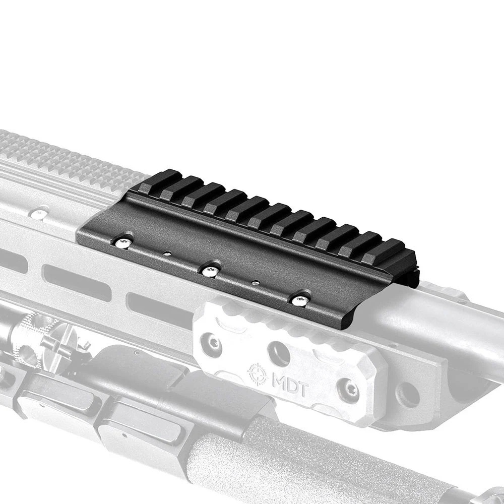 Le pont NV MDT ACC Elite est un rail Picatinny qui se fixe solidement sur le dessus du garde-main, offrant des options de montage polyvalentes pour la vision nocturne, l'imagerie thermique, les prismes/périscopes ou d'autres dispositifs. De plus, le pont NV aide à réduire les effets de mirage.