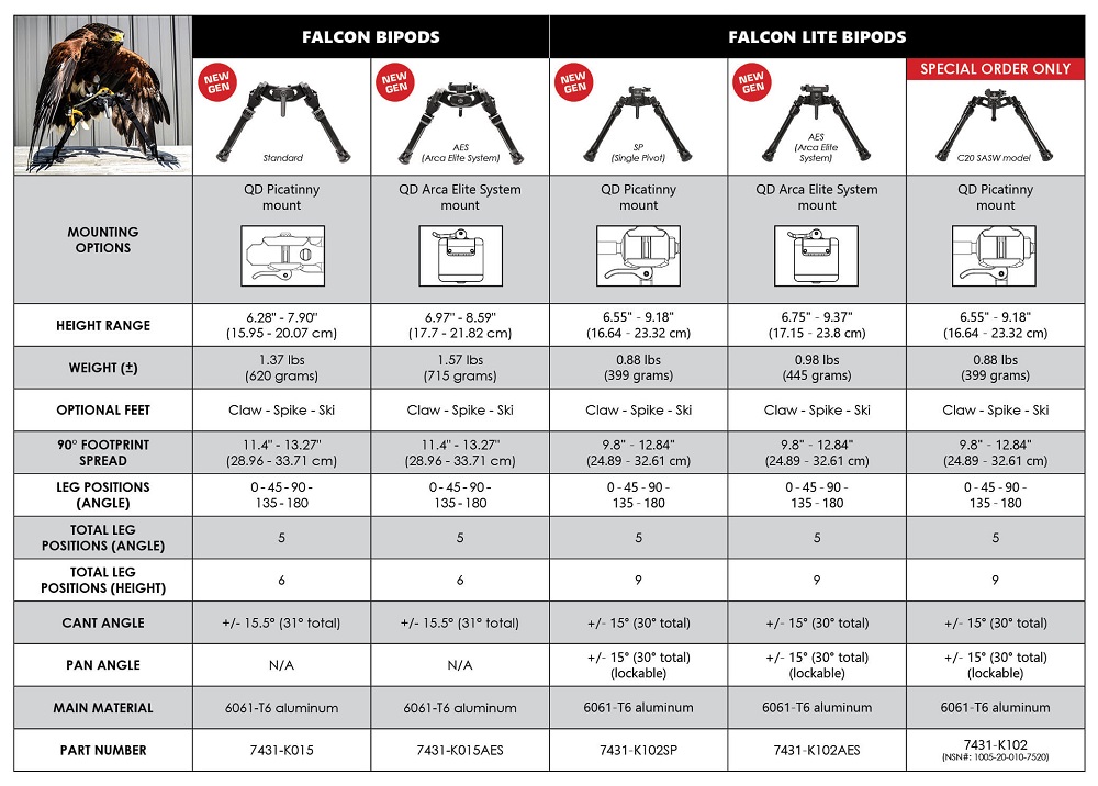 Bi-pied Falcon QD Picatinny Mount Gen 2+