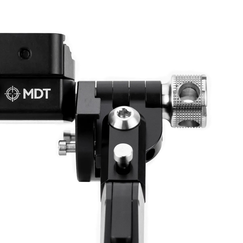 Ce bipied est une véritable œuvre d'art, offrant 3 positions de verrouillage de l'avant à l'arrière - rangé, incliné et abaissé. Le MDT CKYE-POD Gen2 est dans une ligue à part avec une hauteur réglable rapidement d'une seule main, vous permettant d'atteindre de 4,5" à 15,5" (modèle de longueur de jambe standard), associé à 170 degrés d'inclinaison, 360 degrés de capacité panoramique (la version de goujon pivotant d'élingue n'est pas panoramique), et une butée de barricade intégrée. Mélangez les hauteurs et les angles des jambes indépendantes pour créer la position de tir parfaite, à chaque fois.