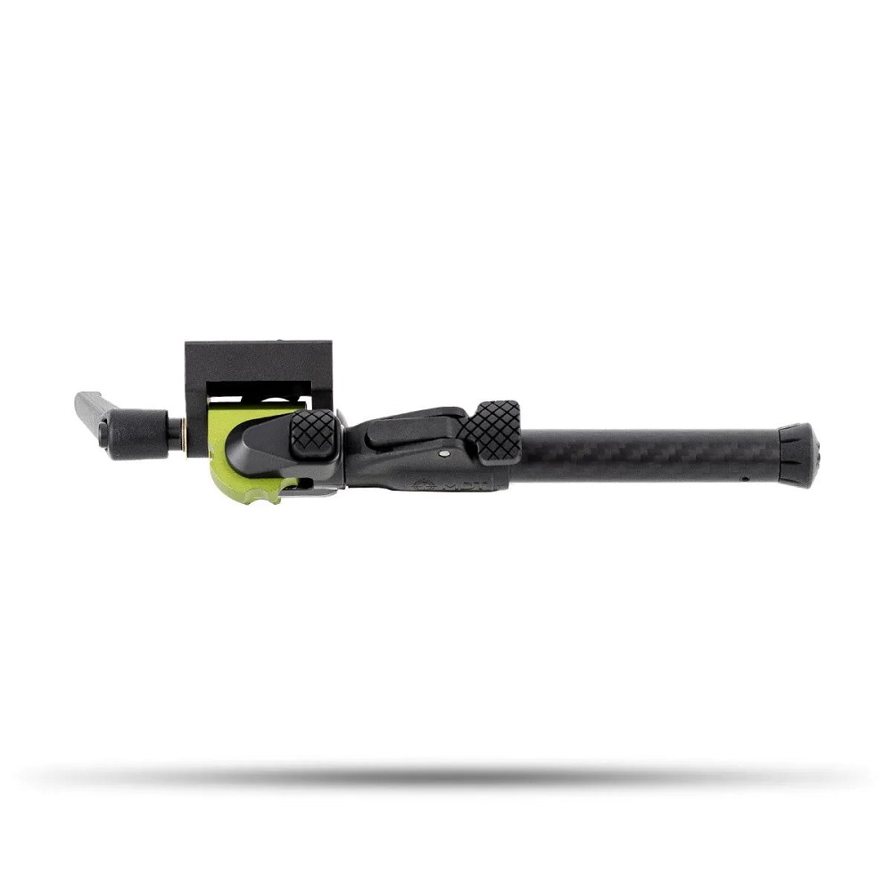 Grâce à son déploiement rapide, à son réglage de hauteur étendu et à son système d’inclinaison (cant) avec tension réglable, il permet d’établir rapidement une position de tir stable sans quitter la cible. Les jambes réglables indépendamment et la capacité d’inclinaison jusqu’à 40° facilitent la mise à niveau de l’arme sur des surfaces irrégulières. Les pieds en caoutchouc haute adhérence assurent une excellente stabilité sur terre, roche ou surfaces dures, même sous l’effet du recul.