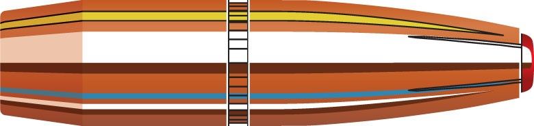 Des cannelures de sertissage permettent de réaliser un sertissage ferme de la balle Sub-X® pour une grande fiabilité dans des armes semi-automatiques.