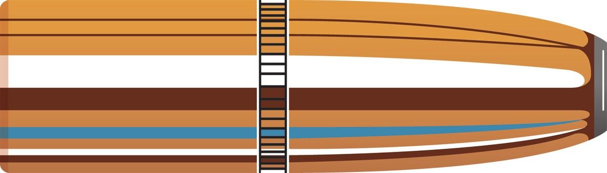 Cette balle est composée d’une chemise en acier cuivré soudée à un noyau en plomb afin de provoquer une expansion contrôlée limitée accompagnée d’une grande pénétration et d’une forte rétention de poids. Souder la chemise au noyau évite leur séparation à l’impact sur des surfaces dures telles que des os. La balle conserve son intégrité et produit une expansion importante.