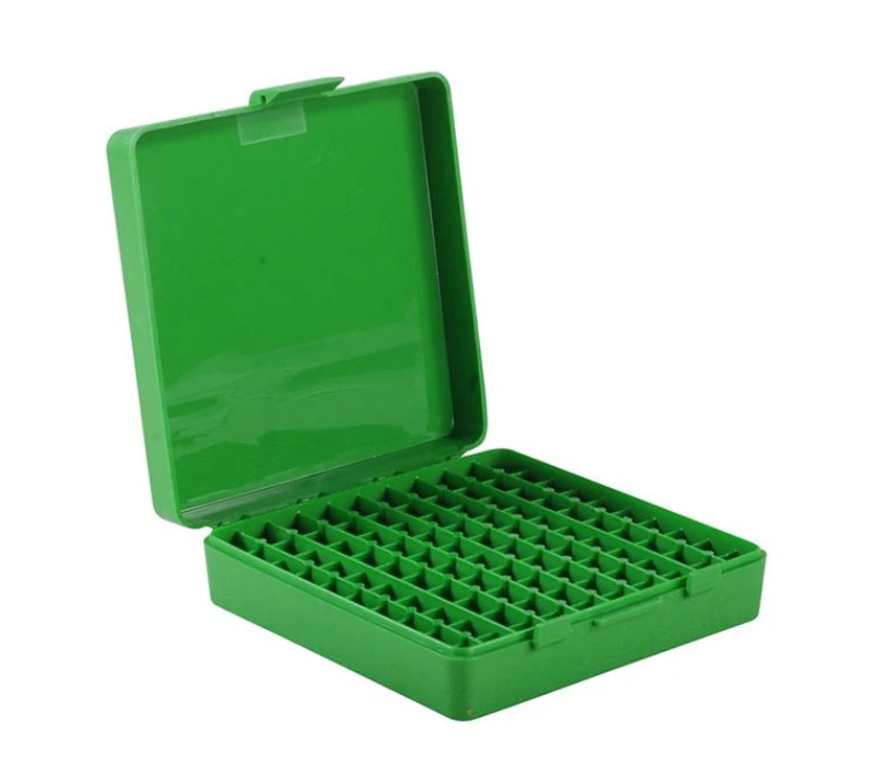 Boîte en plastique extrêmement robuste pouvant contenir 100 munitions de calibre 9 mm Luger, 9 mm Makarov, 380 ACP, 32 S&W et 30 Luger.
