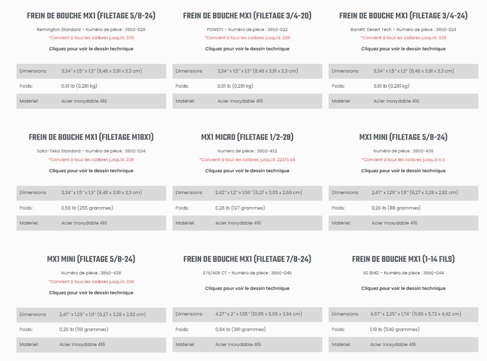 Le frein de bouche Cadex MX1 est conçu pour dévier le souffle de la bouche du tireur et de son observateur. Les gaz sortent latéralement et vers le haut pour réduire le recul ressenti et les nuages de poussière et améliorer le contrôle de la carabine. Il adoucira le recul de votre 338 Lapua comme s'il s'agissait d'un 243 Win. Conception à synchronisation automatique utilisant un boulon de pincement.