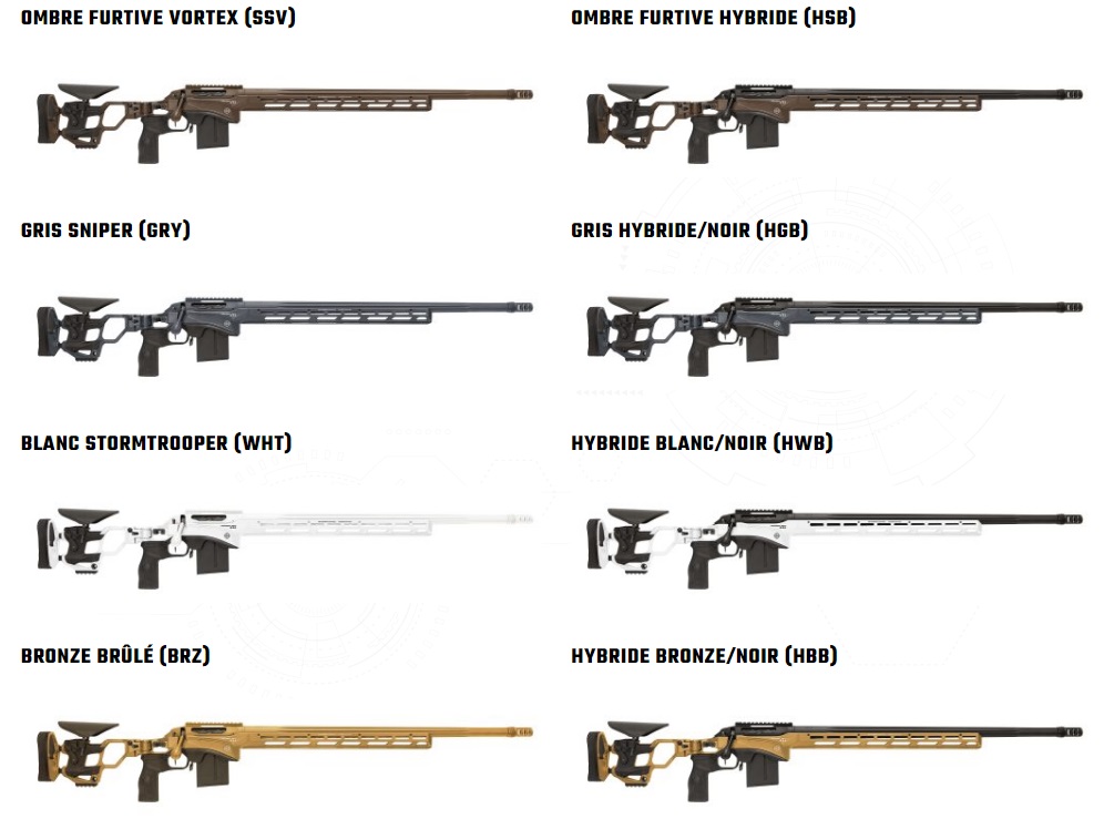 Disponible dans plusieurs calibres et plusieurs couleurs (pour toutes commandes, nous contacter pour plus d'informations/ voir tableau en photo/ fournie sans accessoires).