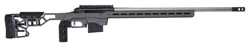 Châssis MDT ACC aluminium avec crosse entièrement réglable. Rail ARCA le long du châssis. Boîtier target inox avec revêtement nitride. Corps de culasse revêtement titane. Détente Accu Trigger personnalisable de 1,5 à 4 lb. Poignée verticale MDT. Chargeur standard AICS. Filetage 5/8X24.