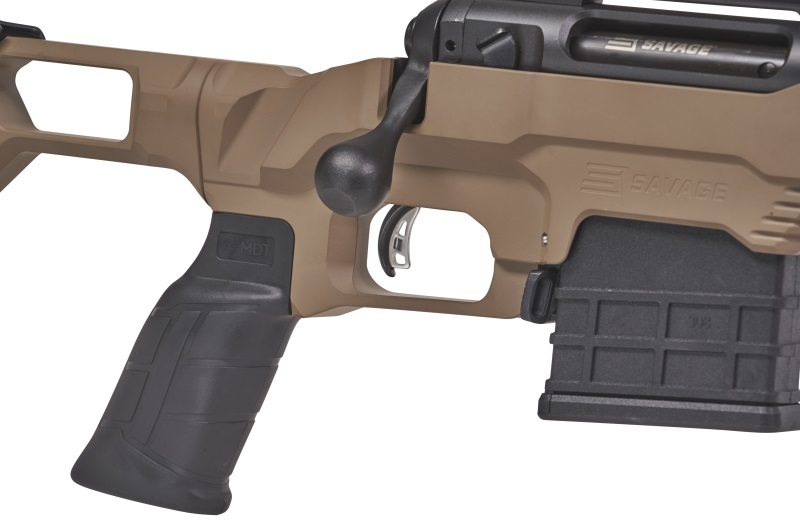 Châssis MDT LSS XL traitement Cerakote FDE.Canon lourd black mat acier carbone fileté 5/8X24. Crosse ajourée unique réglable en longueur, busc réglable. Détente Accu Trigger personnalisable de 1,5 à 4 lb.Rail 20 MOA EGW. Chargeur standard AICS. Frein de bouche.