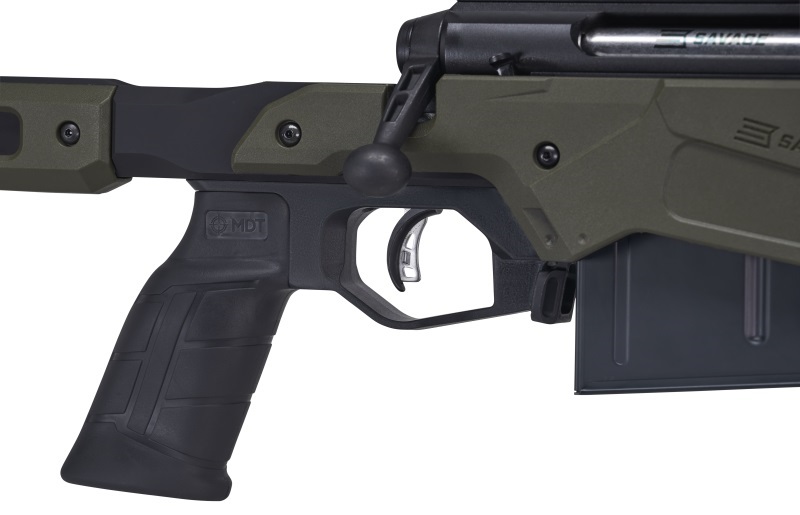 Chassis MDT exclusif pour le modèle AXIS en aluminium bicolore black/green. Crosse réglable. Rail Picatinny. Garde main M-LOCK. Détente Accu Trigger ajustable de 2,5 à 6 Ib. Canon 22 pouces acier carbone fileté. Chargeur détachable 10 coups. Filetage 5/8X24.
