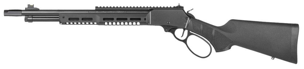 Cette carabine à levier allie harmonieusement une ingénierie de précision et un design intemporel avec des caractéristiques modernes, notamment des inserts M-LOCK et un rail Picatinny long pour les optiques. Polyvalente pour le tir et la chasse. Le large levier permet une utilisation facile même avec des gants. Une mécanique souple et efficace, un magasin tubulaire de 8 coups, un canon fileté 11/16X24 et des inserts M-LOCK modernise la tradition de cette arme. Son rail intégré permet le montage rapide d'optique en complément de la hausse à oeilleton et de son guidon intégré.