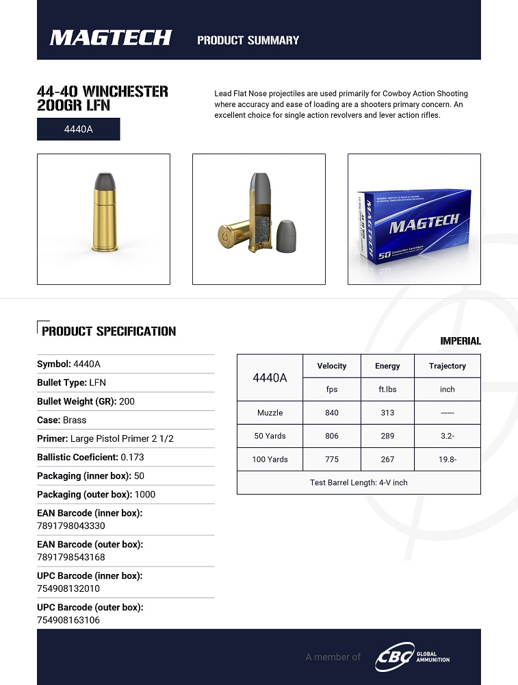 CARTOUCHES MAGTECH 44-40 WIN 200GR LFN 4440A+
