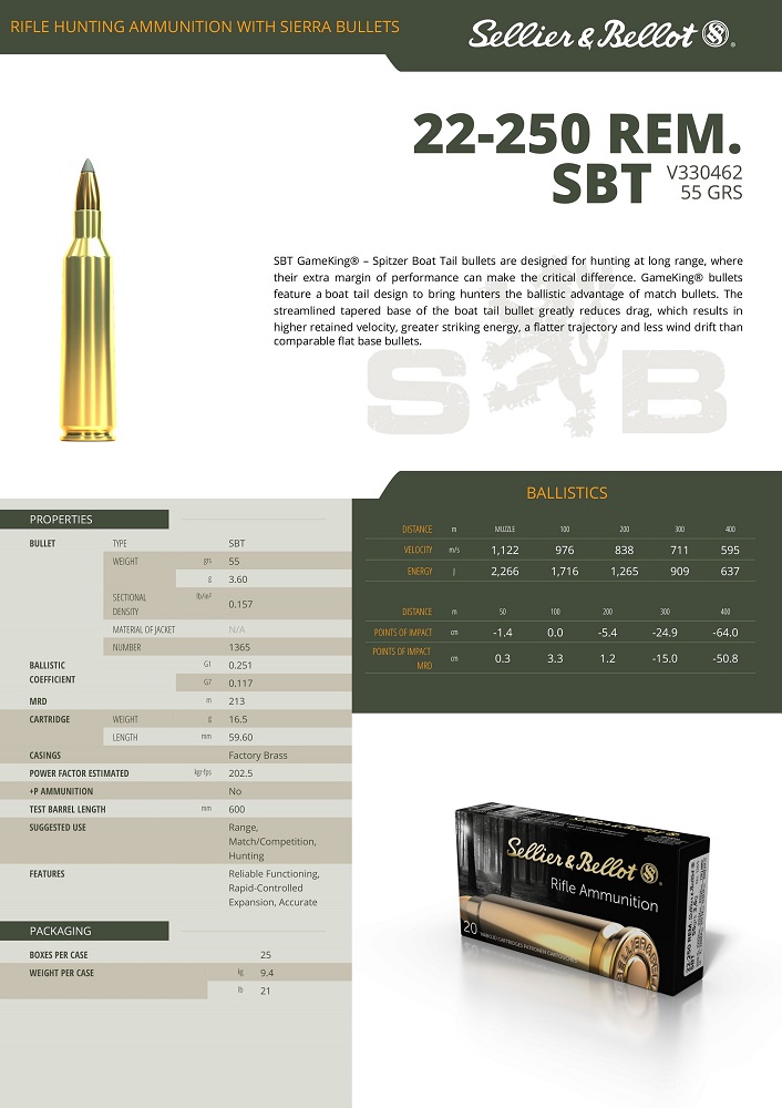 Cartouches Sellier & Bellot Sbt Game King. Les balles Spitzer Boat Tail sont conçues pour la chasse à longue
