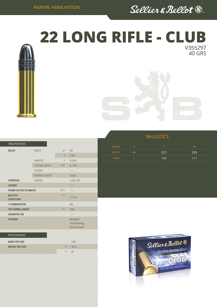 Cartouches Sellier & Bellot Calibre 22 Long Rifle Standard.