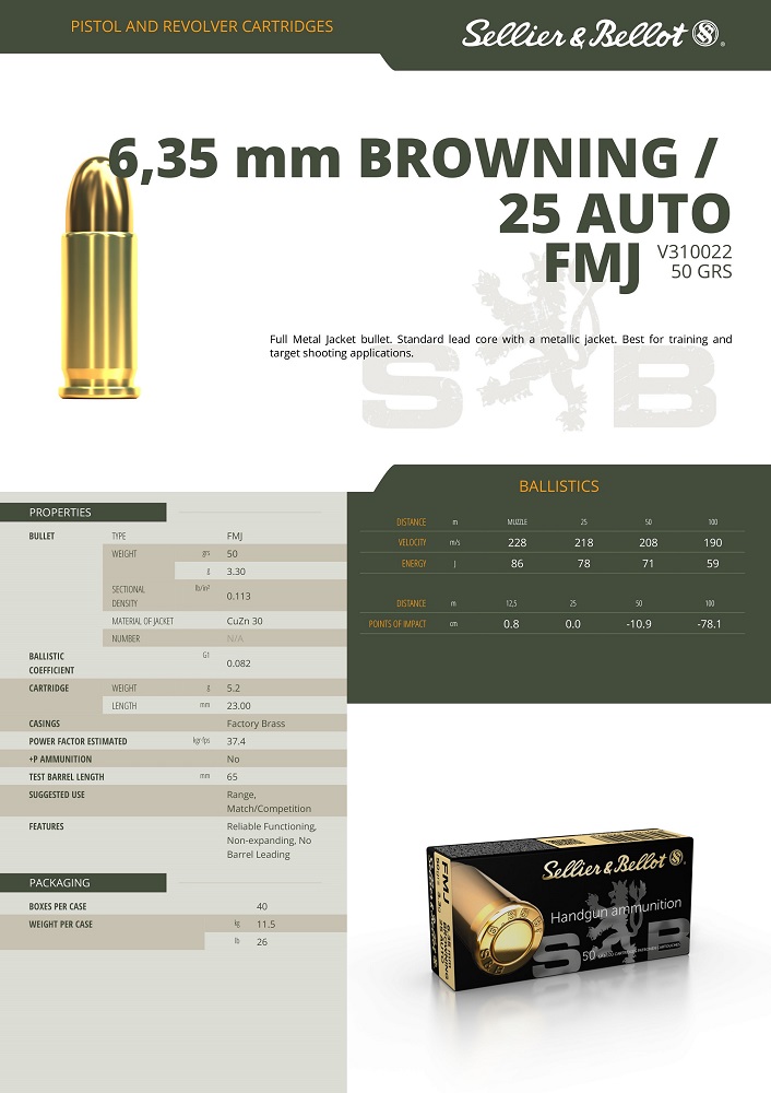 CARTOUCHES SB 25 ACP (6.35) FMJ*