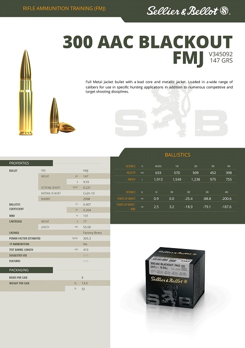 CARTOUCHES SB 300 AAC BLACKOUT FMJ 147grs 9,55g VRACx100 V345092