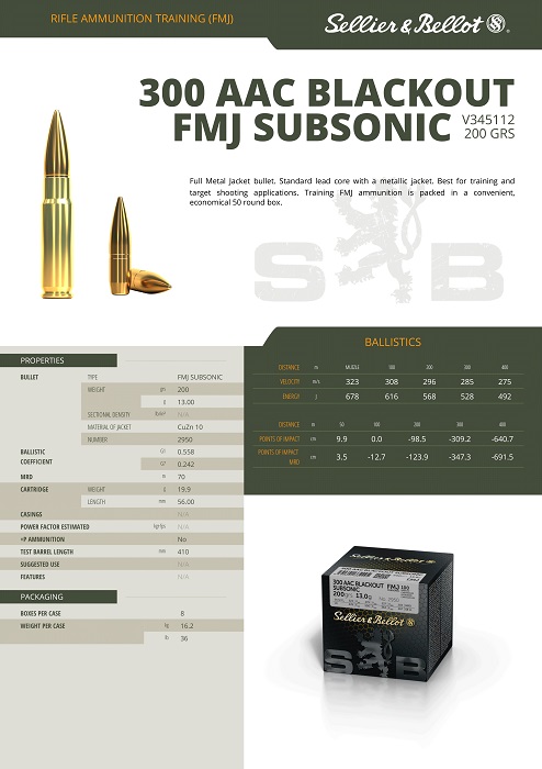 CARTOUCHES SB 300 AAC BLK SUBSONIC FMJ 200grs 13g VRAC x100 V345112
