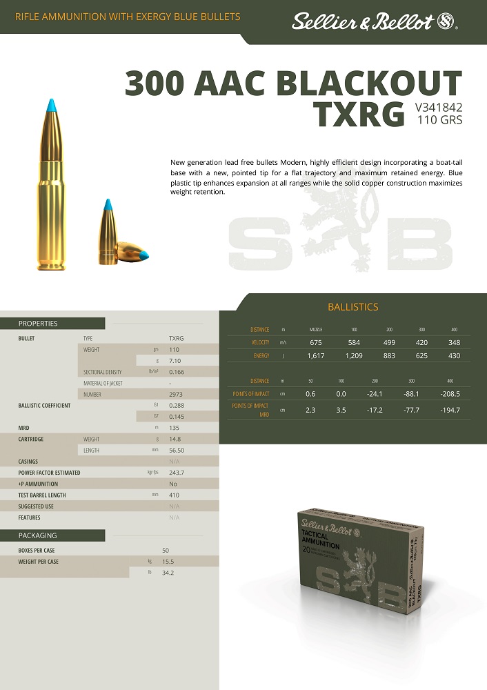 CARTOUCHES SB 300 AAC BLACKOUT TXRG 110GR 7,1G