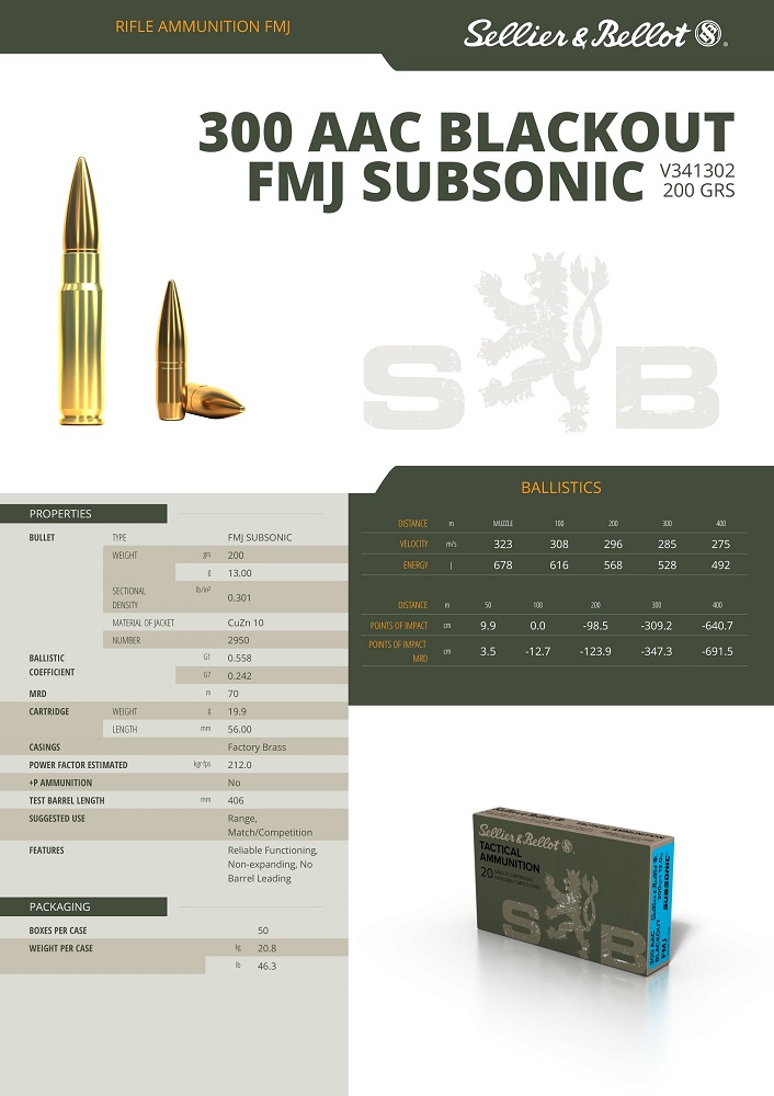 CARTOUCHES SB 300 AAC BLACKOUT FMJ 200/13G SUBSO