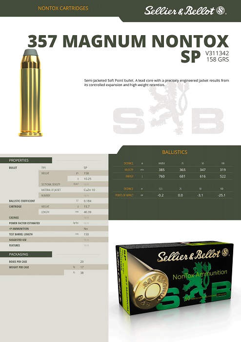 CARTOUCHES SB 357 MAG NONTOX SP 158grs 10,25g V311342*