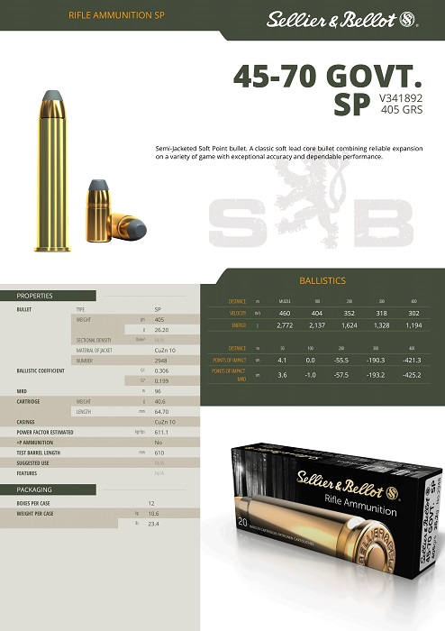 Cartouches Sellier & Bellot Semi-Jacketed Soft Point Bullet. Une munition classique plomb combinant une expansion fiable et un pouvoir d'arrêt important.