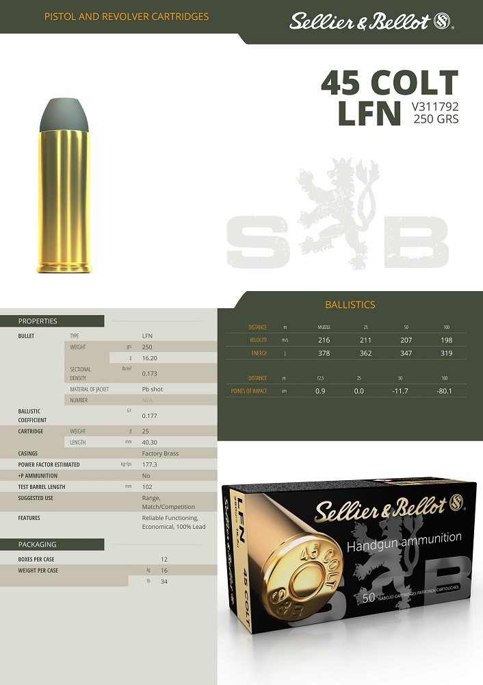 Cartouches Sellier & Bellot calibre 45 Colt.