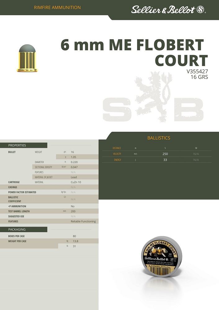 Cartouches Sellier & Bellot calibre 6 mm Flobert Court.