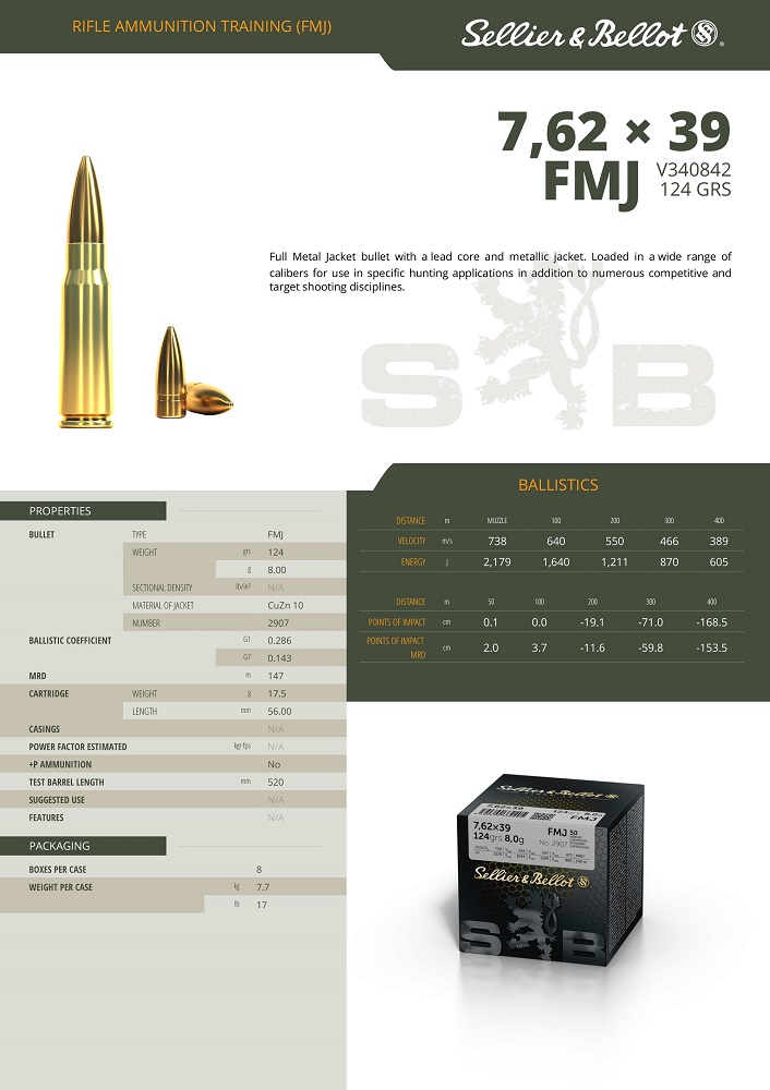 CARTOUCHES SB 7,62X39 FMJ 8G VRAC x50*+