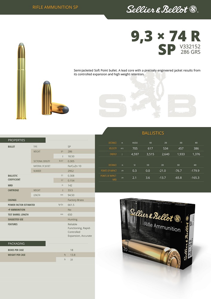Cartouches Sellier & Bellot Semi-Jacketed Soft Point Bullet. Une munition classique plomb combinant une expansion fiable et un pouvoir d'arrêt important.