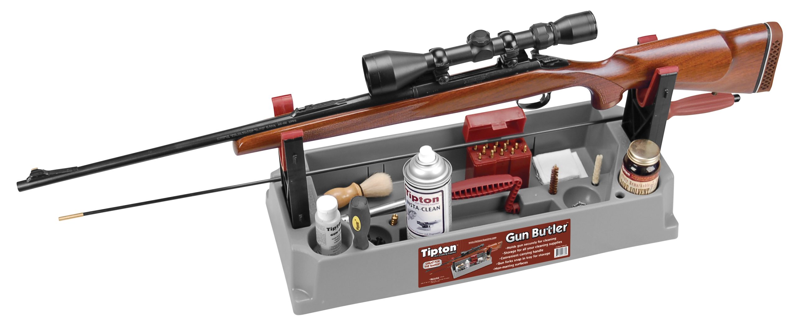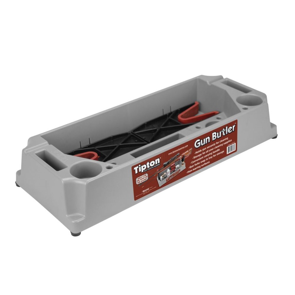 Pour de nombreux chasseurs et tireurs, le nettoyage des armes est une corvée suffisante pour ne pas avoir à s'occuper de tous les outils et fournitures nécessaires pour nettoyer correctement les armes. Les tireurs sérieux qui nettoient régulièrement leurs armes le font souvent à la fois au magasin et sur le champ de tir. Le Tipton Gun Butler offre une solution abordable et pratique pour le stockage et le transport des fournitures, ainsi qu'un support d'arme sécurisé pour le processus de nettoyage proprement dit.