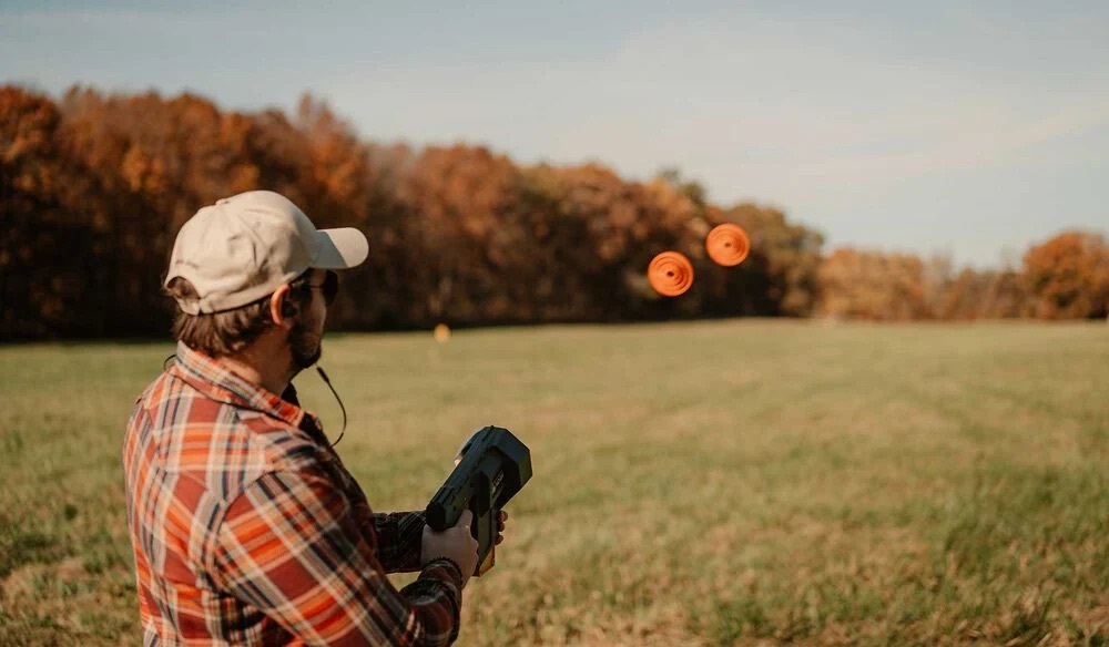 Le lanceur à main lance les cibles Caldwell ClayCopter jusqu'à 100 mètres.