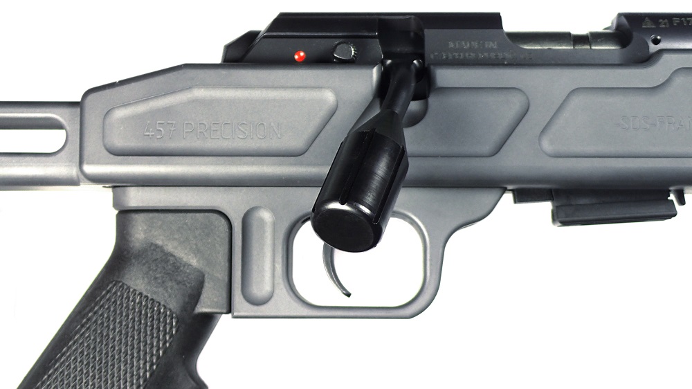 Levier en acier entièrement usiné sur machine à commande numérique pour modèle CZ 457. Traitement de surface bronzage noir. Montage en lieu et place de la boule d'origine de la CZ 457 uniquement. Outils nécessaires : pinces multiples + chiffon (pour le démontage de la boule d'origine) + frein filet ou colle cyanocrylate (blocage en place une fois montée). Fabriqué par SDS Military (fabrication 100 % française).