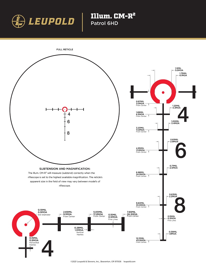 La Leupold Patrol 6HD® Gen 2 est une lunette de visée conçue pour offrir rapidité, contrôle et fiabilité dans les environnements dynamiques. Son grossissement variable 1-6x et sa conception ultra-légère et compacte permettent une transition fluide entre le tir à courte distance et l’engagement de cibles à distance plus élevée.