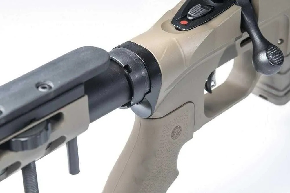 Similaire à une plaque arrière d’AR (End Plate), cette pièce offre une modularité accrue au tireur, lui permettant d’installer divers modèles de crosses sur son fusil à verrou.