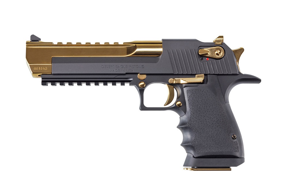 L'édition spéciale "Black and Gold" du Desert Eagle se caractérise par un schéma de couleurs bicolore saisissant. Le canon, les commandes, la détente, les goupilles, le marteau, le cran de mire et la base du chargeur sont finition or titane hautement poli. Ce revêtement n'est pas seulement beau, il est aussi très durable et résistant à l'usure. Le reste du pistolet est coloré en noir mat. L'effet d'ensemble attire l'attention, faisant du Deagle Black and Gold l'une des configurations les plus distinctives de l'emblématique Desert Eagle.