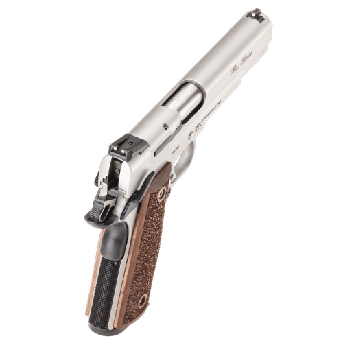 Le modèle 1911 est un myhte, une légende de l'armement. En 2003, Smith & Wesson a présenté sa variante de l’arme de poing semi-automatique classique M1911, le SW1911. Cette arme conserve les dimensions, le fonctionnement et la sensation bien connus du M1911, tout en ajoutant une variété de touches modernes. Les mises à jour de la conception comprennent la dentelure à l’avant de la glissière pour une utilisation et un démontage plus faciles, une sécurité de préhension élevée « queue de castor », un extracteur externe, un marteau et une gâchette plus légers, ainsi que des sécurités internes mises à jour pour éviter les décharges accidentelles en cas de chute.