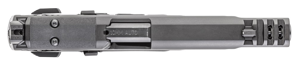 Une glissière longue avec un portage dans le canon en fait un pistolet 10mm plus précis et plus maniable.