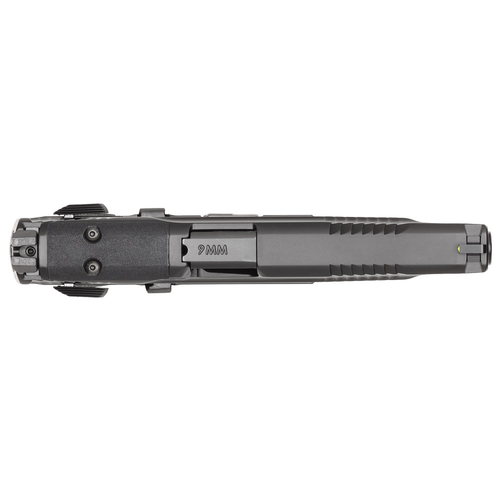 Canon de 5 pouces en acier inoxydable avec finition Armornite®, pas de rayure 1:10": la construction lourde et le canon réduisent le recul pour des tirs de suivi plus rapides et plus précis.